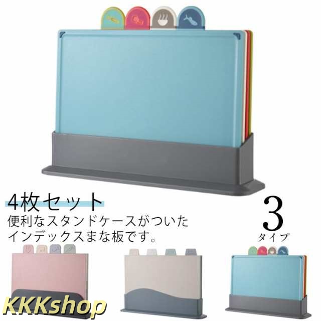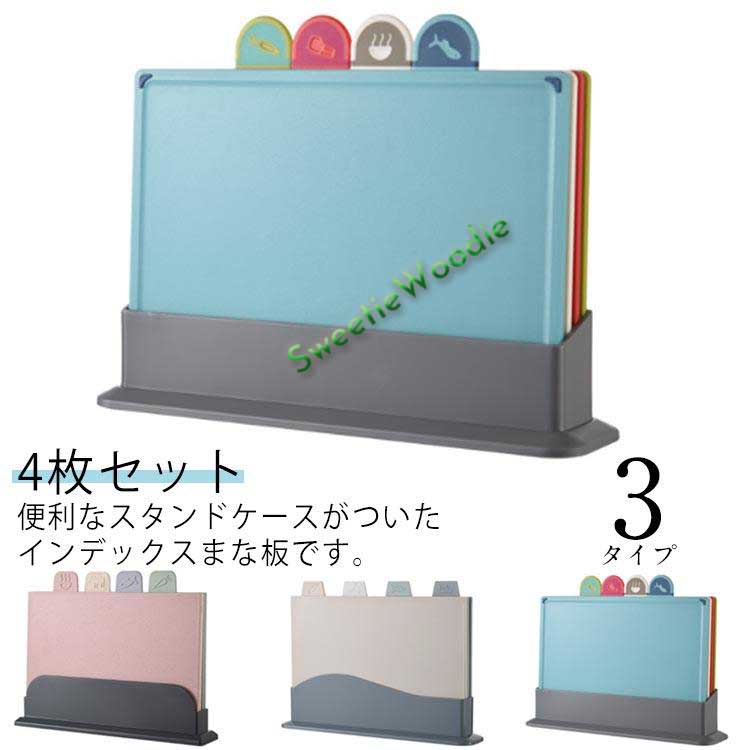 まな板 4枚セット スタンド付き インデックスまな板 肉用 野菜用 魚用 使い分け まな板 カラフル 抗菌 食洗