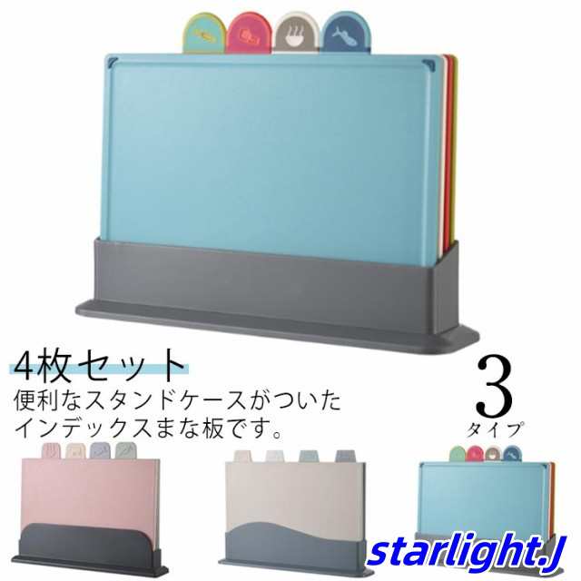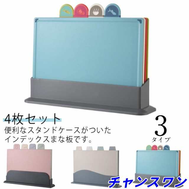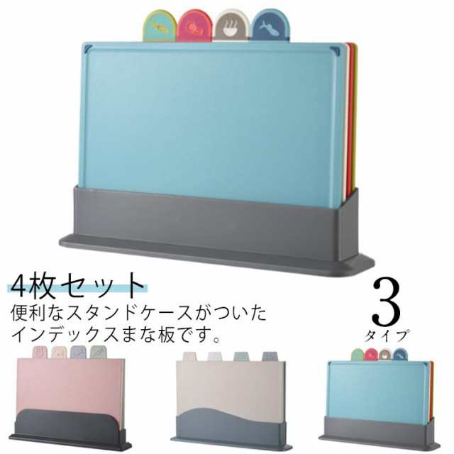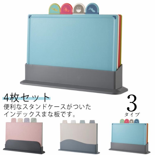 まな板 4枚セット インデックスまな板 肉用 野菜用 魚用 使い分け まな板 カラフル 抗菌 食洗機対応 スタン