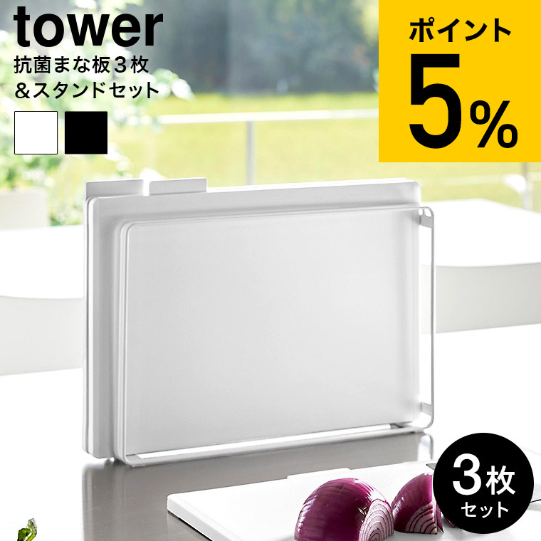tower 山崎実業 食洗機対応 抗菌まな板3枚セット タワー キッチン 送料無料 8184 8185 ホワイト ブラック