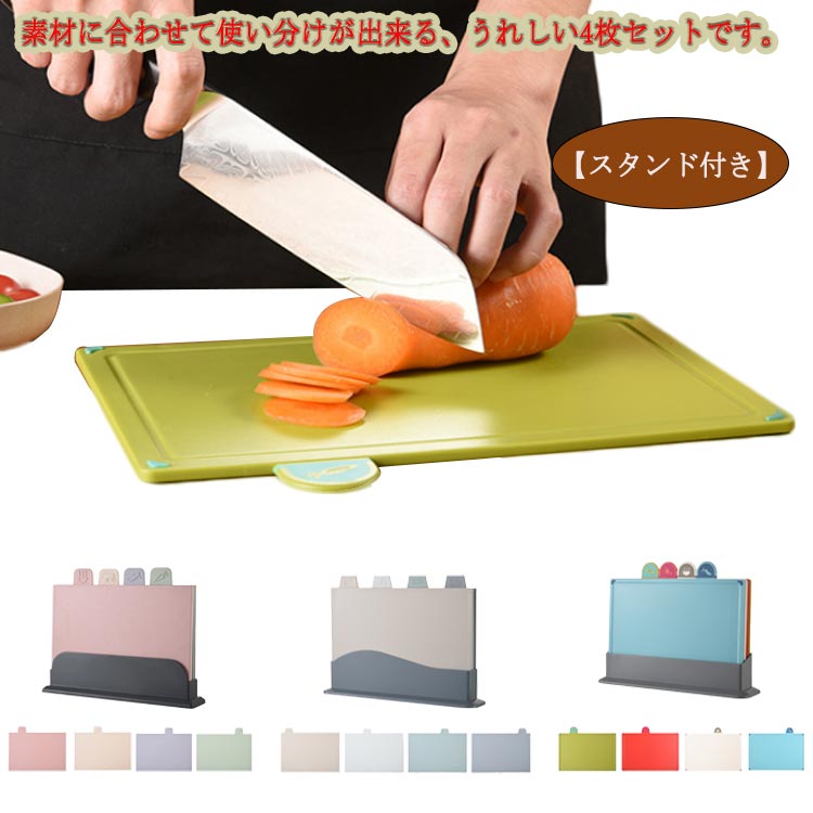 スタンド付き 滑り止め カッティングボード キッチン インデックスまな板 抗菌 まな板 4枚セット 使い分け
