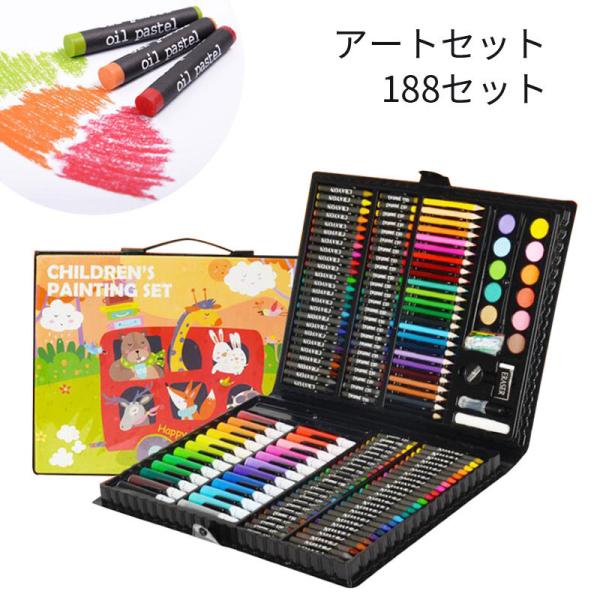 商品:色鉛筆188セット サイズ:約29.3*39.2*3.7cm セット:クレヨン×48、オイルパステル×48、 水彩ペン×24、色鉛筆×24、パステル×12、ペーパークリップ×25、ペン×1 パレット×1 、スケッチペンシル×1、消しゴム×1 、...