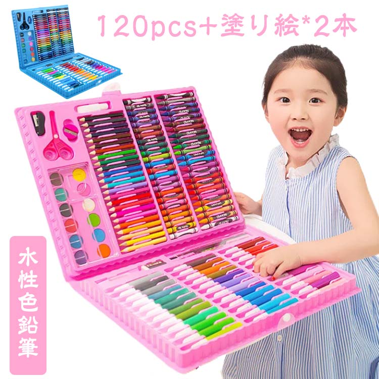 お絵かきセット クレヨン 水性色鉛筆 オイルパステル 120色 カラーサインペン 固形水彩 色鉛筆 絵の具セット...