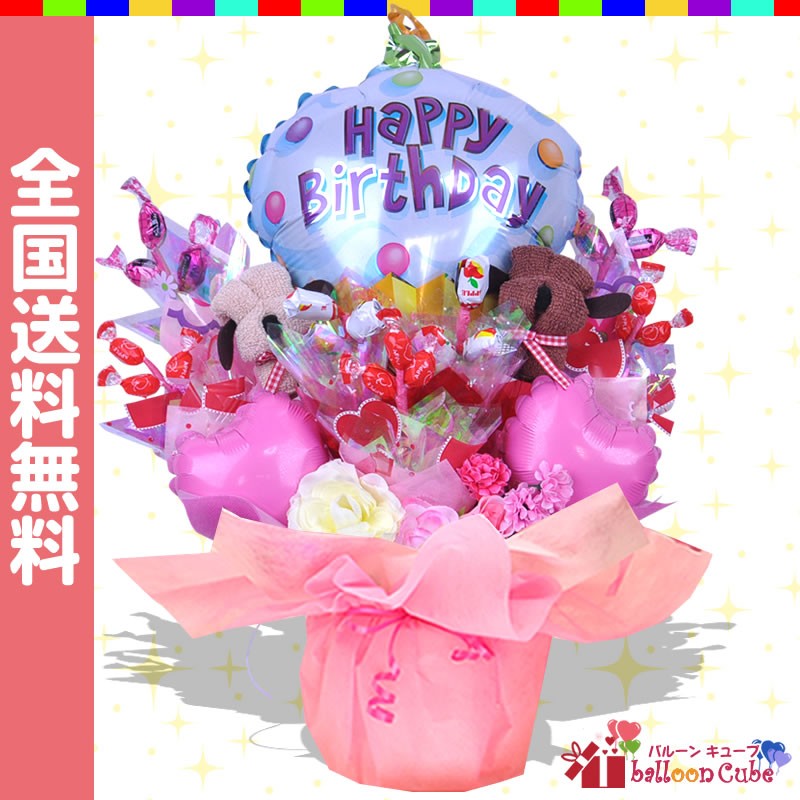 わんちゃんとハッピーバースデーピンク キャンディブーケ NO.7125b