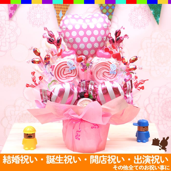 ピンクドットのキャンディブーケ 小粒タイプ バルーン キャンディーブーケ ギフト 電報 NO.7133b