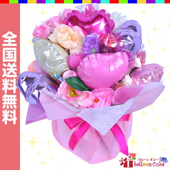 ピンクドットハートとキャンディ 小粒タイプ キャンディブーケ バルーン ギフト NO.7137b