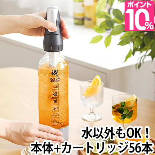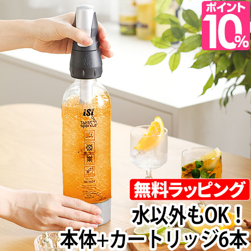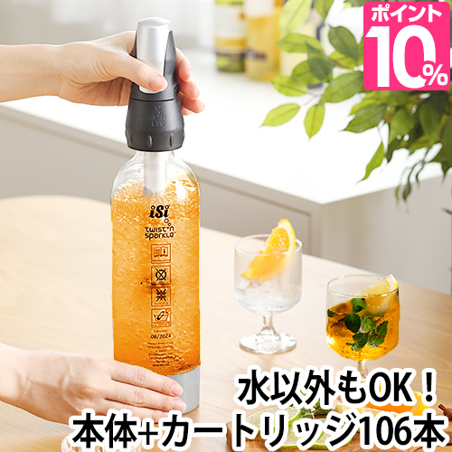 水やジュース、アルコール飲料などを簡単に炭酸飲料にすることができる炭酸水メーカー「ツイスパソーダ」。ボトル、キャップ、ノズル、炭酸カートリッジ6本がセットになった、すぐに使えるスターターキットです。 【...