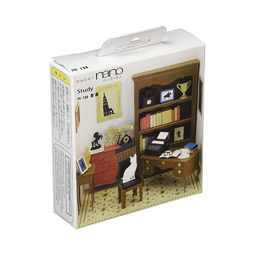 わずか90X90X60mmの空間にレーザーカットで精密にカットされた紙を使って小さな部屋、書斎が出来上がります。男女共にお選びいただけるデザインで、レーザーカットにより写真立てや小さな本の1冊1冊等細...