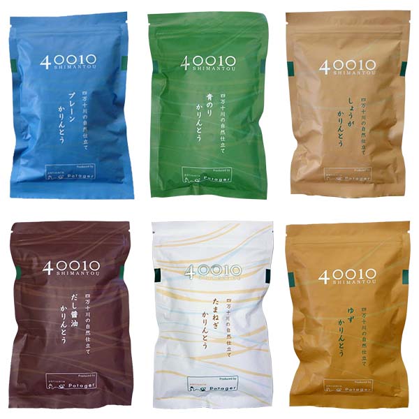 四万十川の自然仕立てかりんとう 【40010(しまんとう)セット6袋入り(しょうが・たまねぎ・プレーン・だし醤油・青のり・ゆず)ギフト箱入り】 6種類の味が楽しめる詰め合わせセット。 高知のお土産 ご贈答などに ...