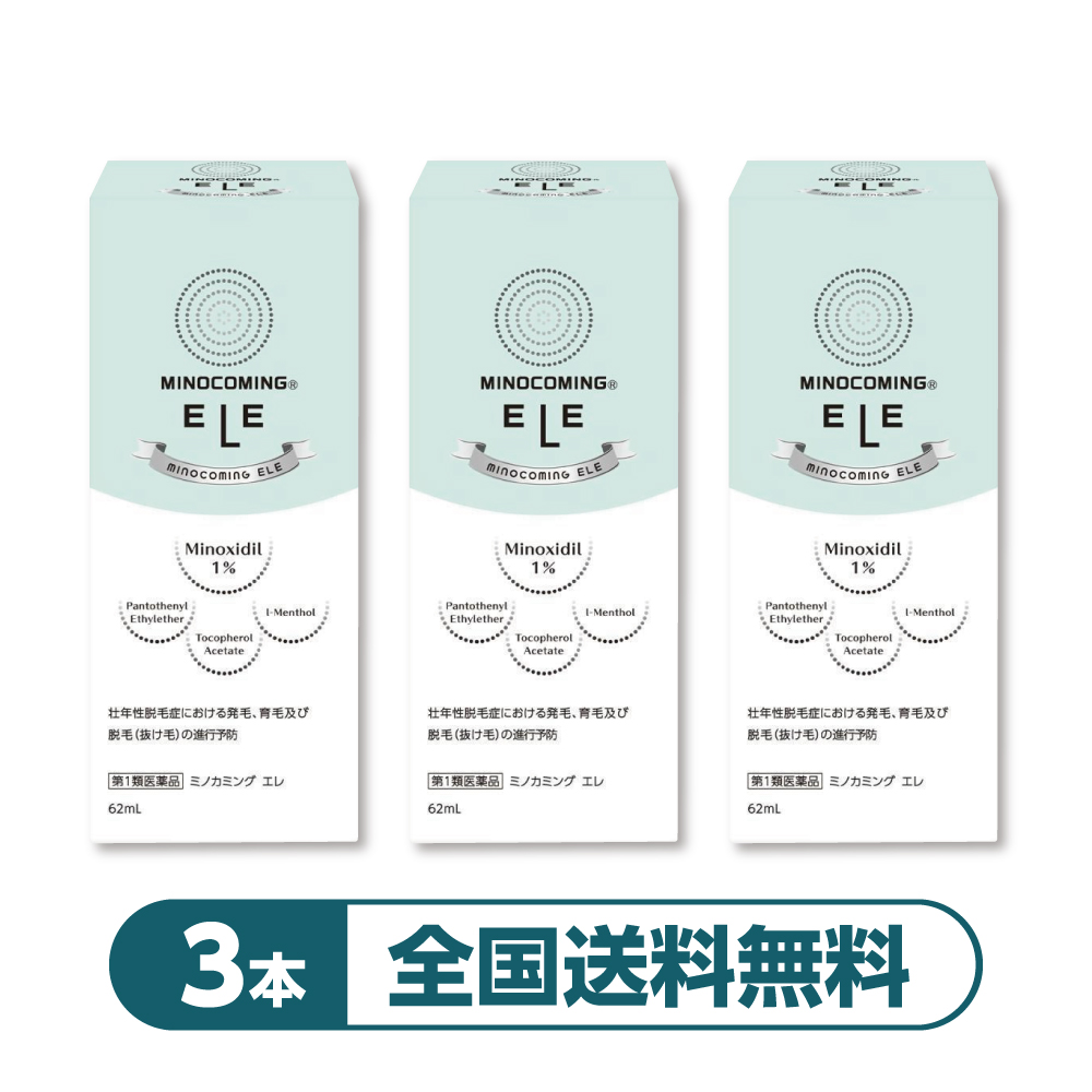 【3本】【女性用発毛剤】【公式】『ミノカミング エレ 62mL』|ミノキシジル1%配合| 女性用発毛薬 抜け毛