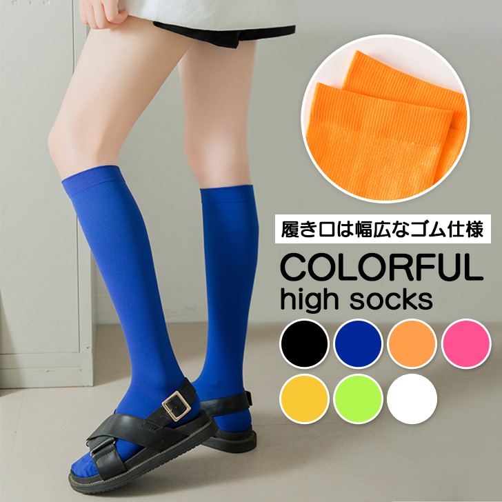 新作 選べる7カラーレディースカラフル無地ハイソックス 靴下 くつ下 クルーソックス 大きいサイズ フリー