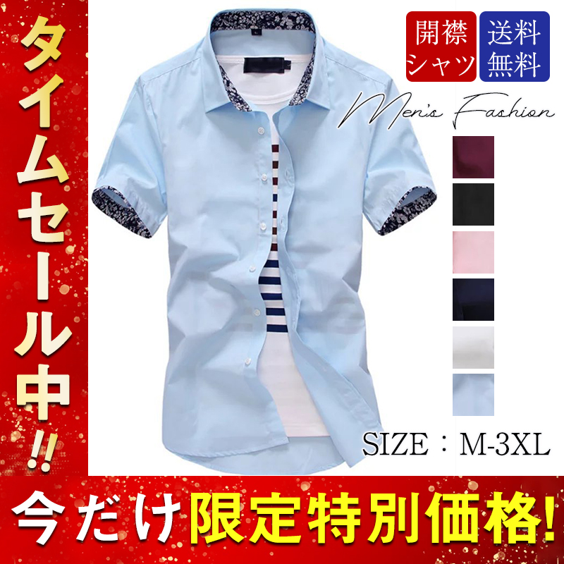 半額セール ワイシャツ メンズ 半袖シャツ ボタンダウン クールビズ 無地 ビジネス 開襟 羽織 通勤 通学 部