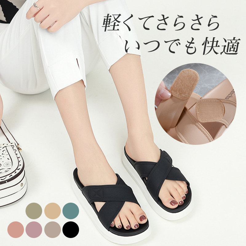 スリッパ レディース ミュール フラット マジックテープ 厚底 女の子 オシャレ 滑り止め ぺたんこ 履きやす