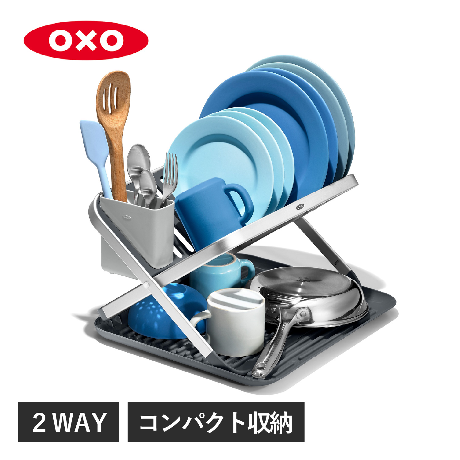 oxo オクソー 水切りラック ディッシュラック 折りたたみ ステンレス 大容量 2WAY FLAT DISH RACK 13322800