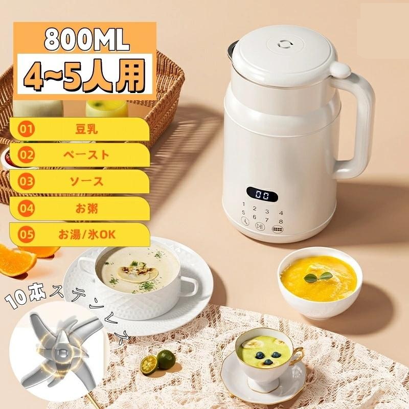 【大特価】【10%超還元セレクト】豆乳メーカー 4?5人 800ML 濾過不要 全自動 一台多役 乾燥豆でもOK 小型豆