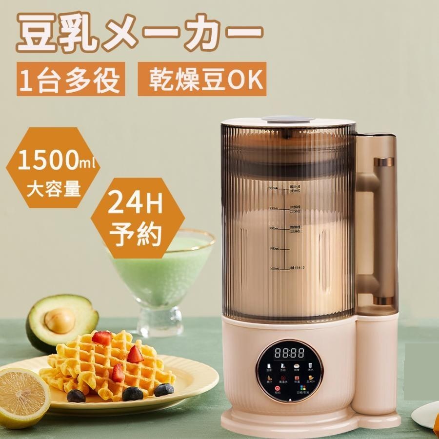 豆乳メーカー ミキサー ブレンダー 乾燥大豆 全自動 スープメーカー 完全豆乳メーカー ジューサー 24H予約 12枚刃 1500ml 静音 洗浄モード...