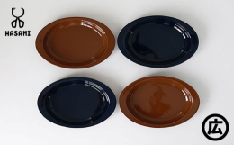 【ふるさと納税】【波佐見焼 マルヒロ】HASAMI SEASON 01 オーバルプレートセット(4点)ブラウン×ネイビー