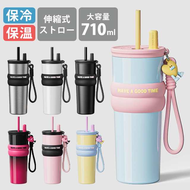 タンブラー 水筒 ストロー付き 持ち運び こぼれない ストロー 蓋付き 伸縮 保温 保冷 2way おしゃれ 真空