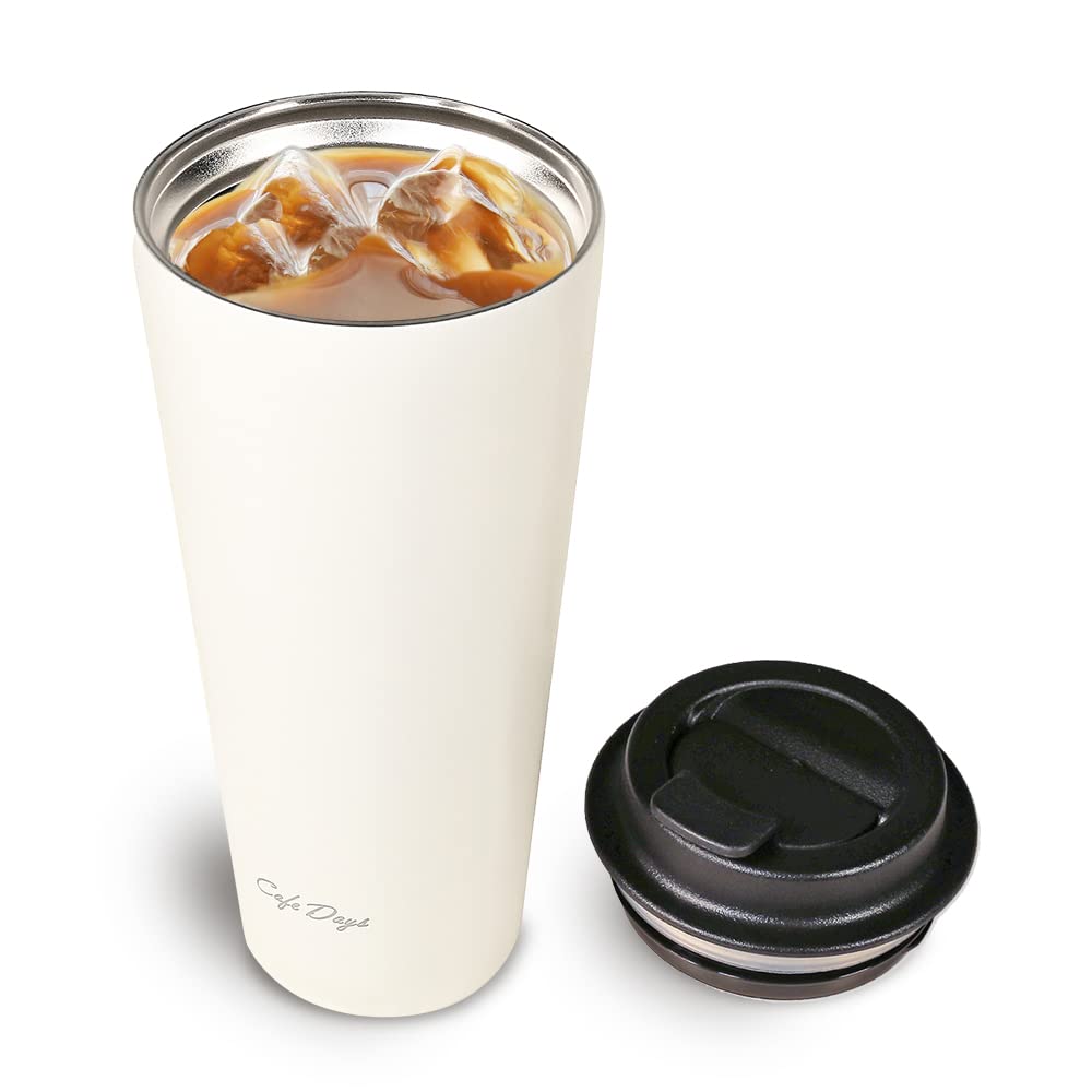 アイリスオーヤマ 【ドリンクホルダー対応!】 タンブラー トラベラーリッド付き 470ml ホワイト 斜めにして