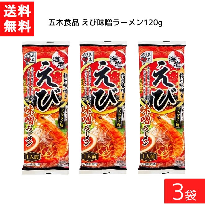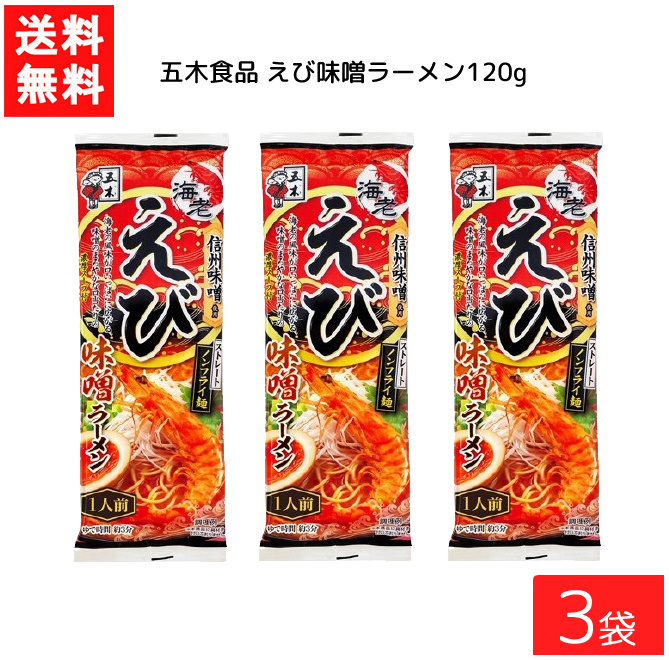 送料無料 五木食品 えび味噌ラーメン 120g ×3袋