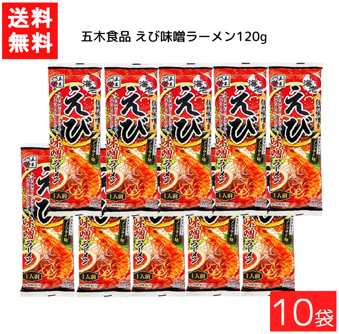 送料無料 五木食品 えび味噌ラーメン 120g ×10袋