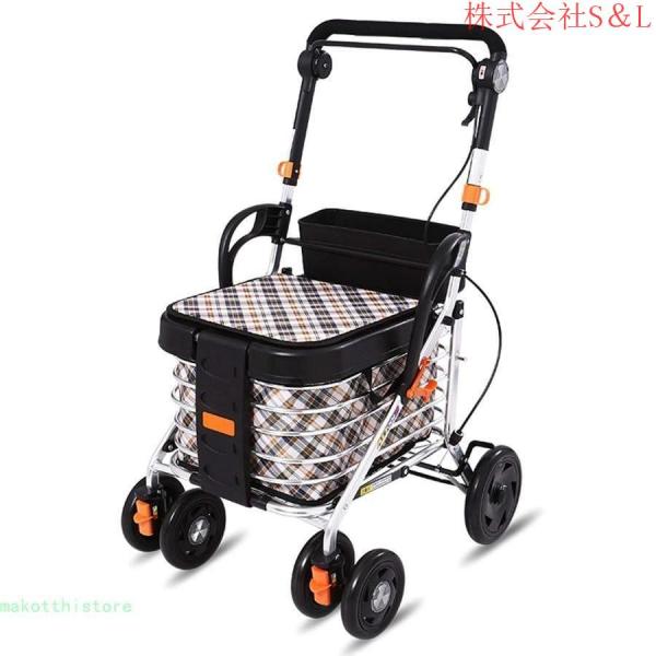 シルバーカー ワイヤーフレームの大容量カゴ 小物入れ付き 株式会社S&L 簡単手元駐車ブレーキ 耐荷重120kg