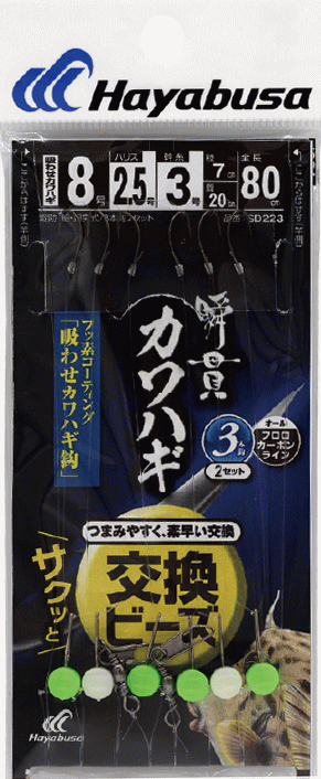 ハヤブサ 瞬貫 カワハギ ビーズ式 吸わせ鈎 3本鈎2セット SD223 鈎7号 ハリス2号 / 仕掛け つり具 メール便