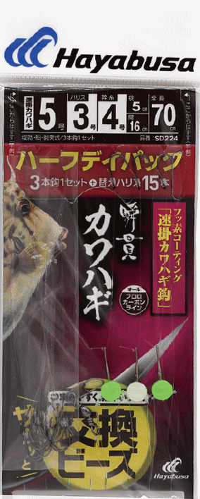 ハヤブサ 瞬貫 カワハギ ビーズ式 速掛カワハギ鈎 ハーフデイパック SD224 鈎5.5号 ハリス3号 / 仕掛け つ