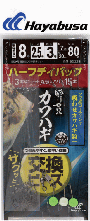 ハヤブサ 瞬貫 カワハギ ビーズ式 吸わせ鈎 ハーフデイパック SD225 鈎8号 ハリス2.5号 / 仕掛け つり具 メ