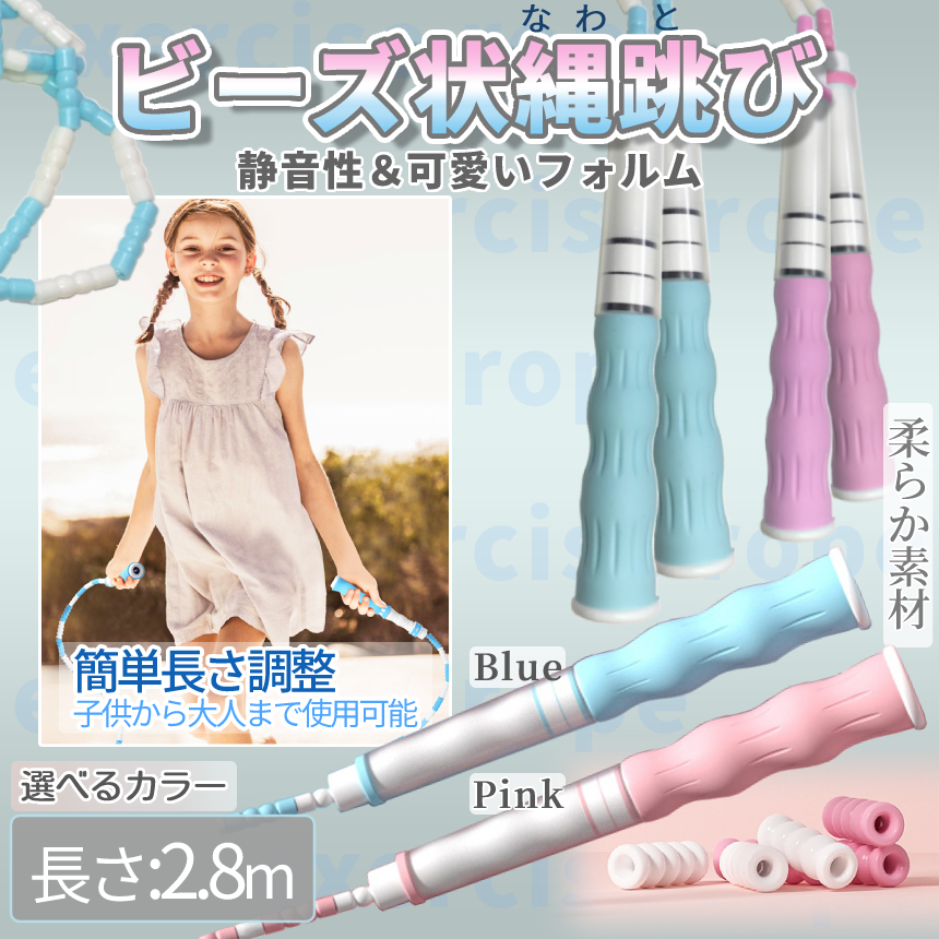 ビーズ 縄跳び なわとび ブルー ピンク 2.8m 長さ 調整 調節 ダイエット フィットネス ジム トレーニング