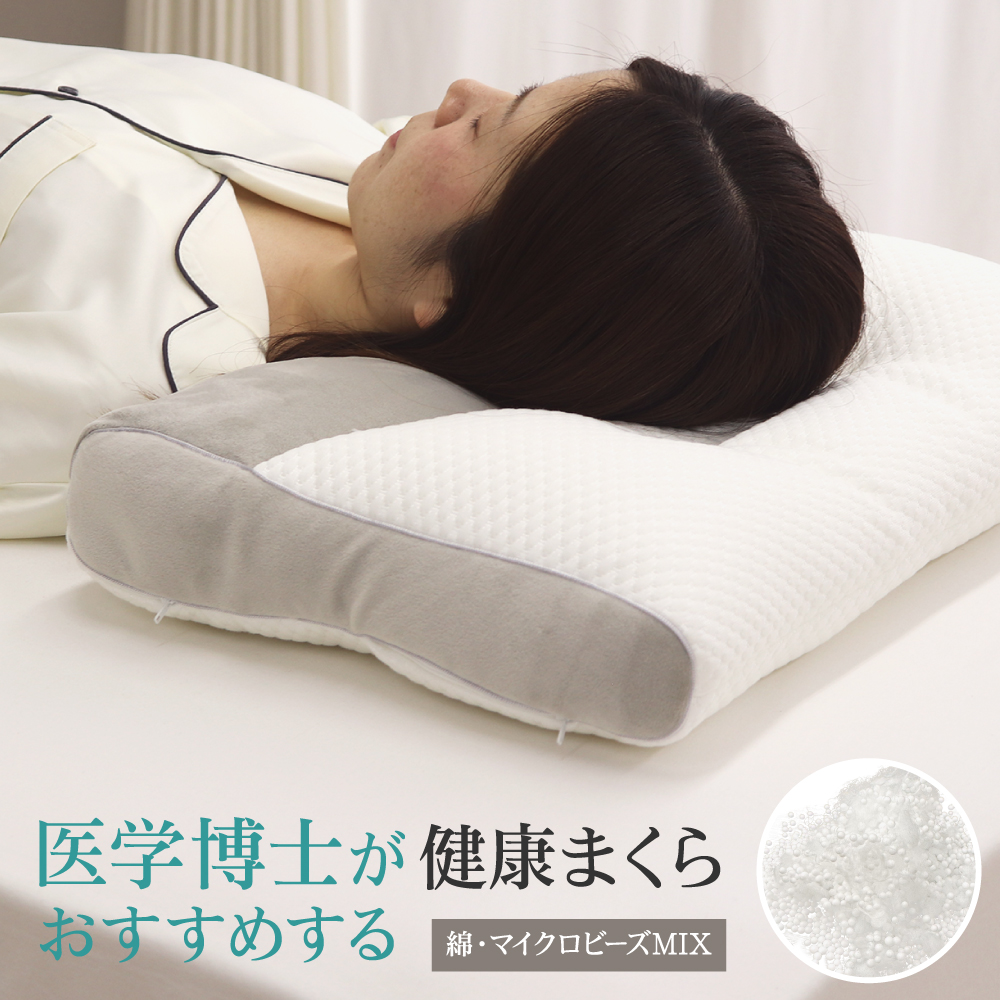 医学博士がおすすめする健康まくら 約35×55cm わた+マイクロビーズMIX やややわらかめの寝心地 グレー DSM