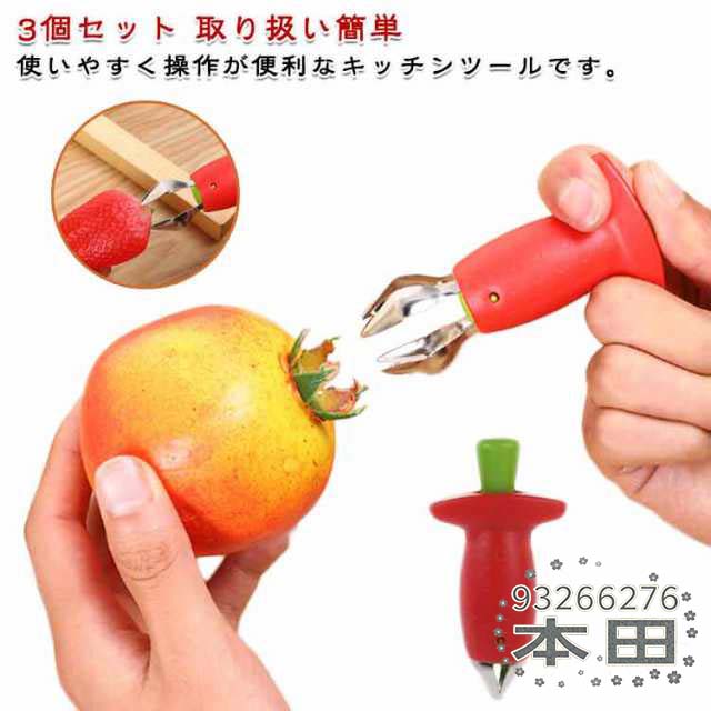 タネ抜き取り 3個セット 茎取り イチゴ/トマトのヘタ取り器 イチゴ/トマトのヘタ取り器 核掘り ヘタ取り ピ