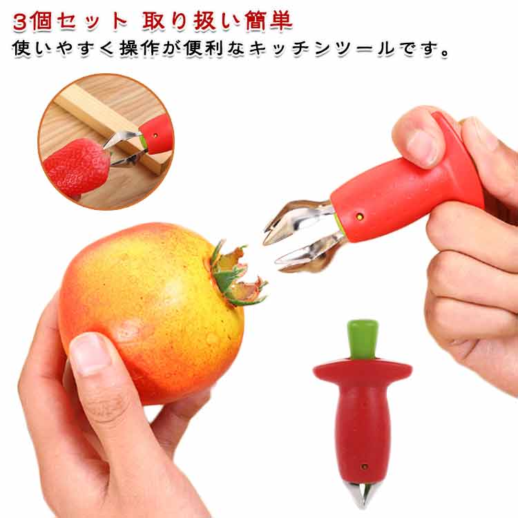 イチゴ/トマトのヘタ取り器 タネ抜き取り 3個セット 芯抜き 茎取り 核掘り ヘタ取り ピーラー フルーツ 取