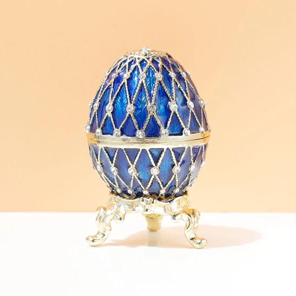 Susuzuku-青いファバージエッグオーナメント、収集可能、手描き、イースターエッグ、クリスタルジュエリー
