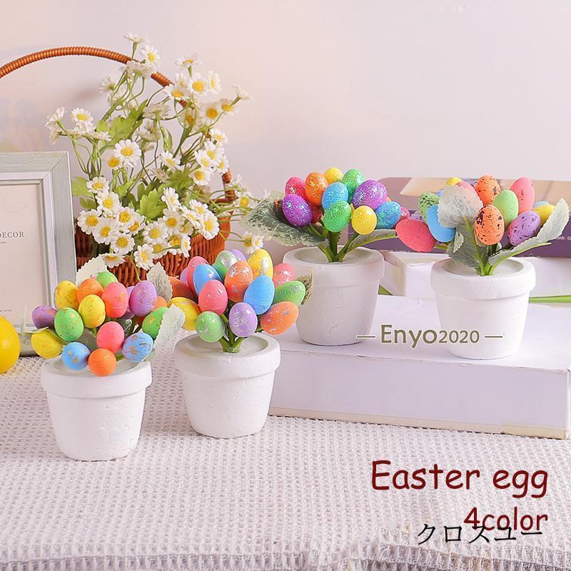 イースターエッグ カラフルエッグ 飾り ディスプレイ インテリア雑貨 イベント 置物 造花 鉢植え たまご 卵