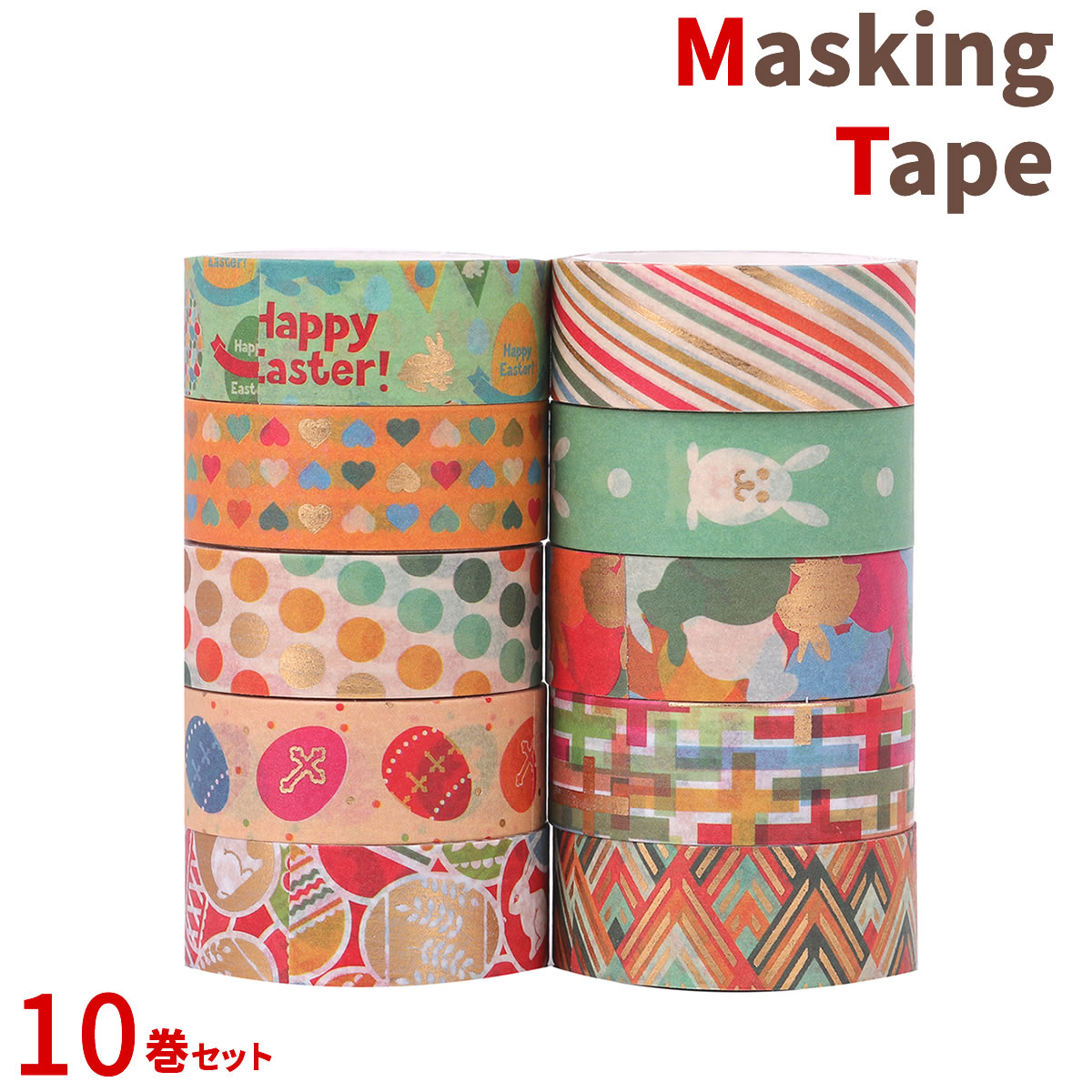 マスキングテープ 10巻セット マステ ハッピーイースター 15mm×3m イースターバニー イースターエッグ うさ
