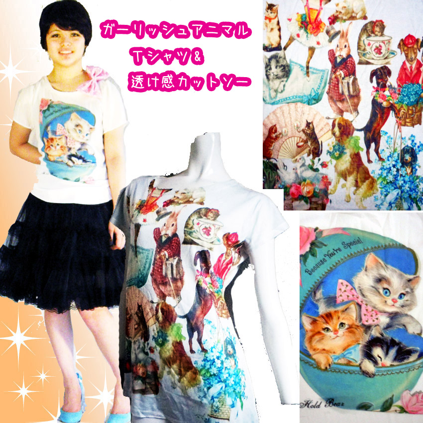 訳あり 送料無料 激安 カットソーTシャツ ねこ ネコ かわいい イースターエッグ CAT 子猫 パステル ガーリ