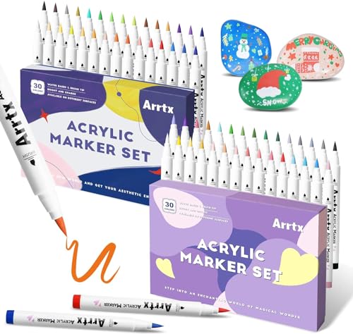 Arrtx 30色アクリルマーカー、15mmジャンボフェルトチップアクリルペイントペン、岩絵、石、ガラス、イース