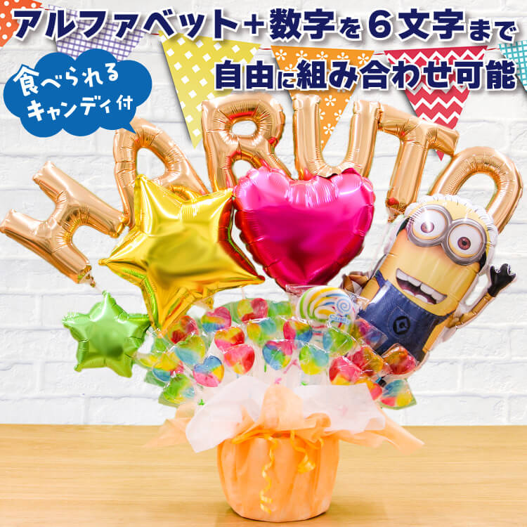 組み合わせ 6文字 ミニオン バルーン キャンディ ブーケ 選べる バルーン電報 キャンディー 結婚式 誕生日