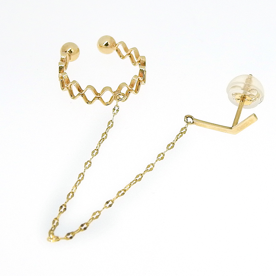 ウェーブ イヤーカフ K10YG 10金 イエローゴールド スタッドピアス付 アクセサリー