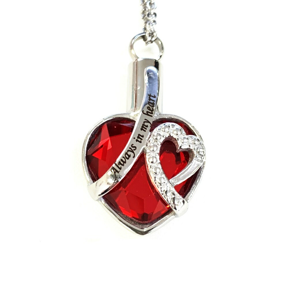 【普通郵便発送】 ガラス ハート 遺骨ネックレス ガーネットカラー 宝石ジュエリー チェーン付き アクセサ