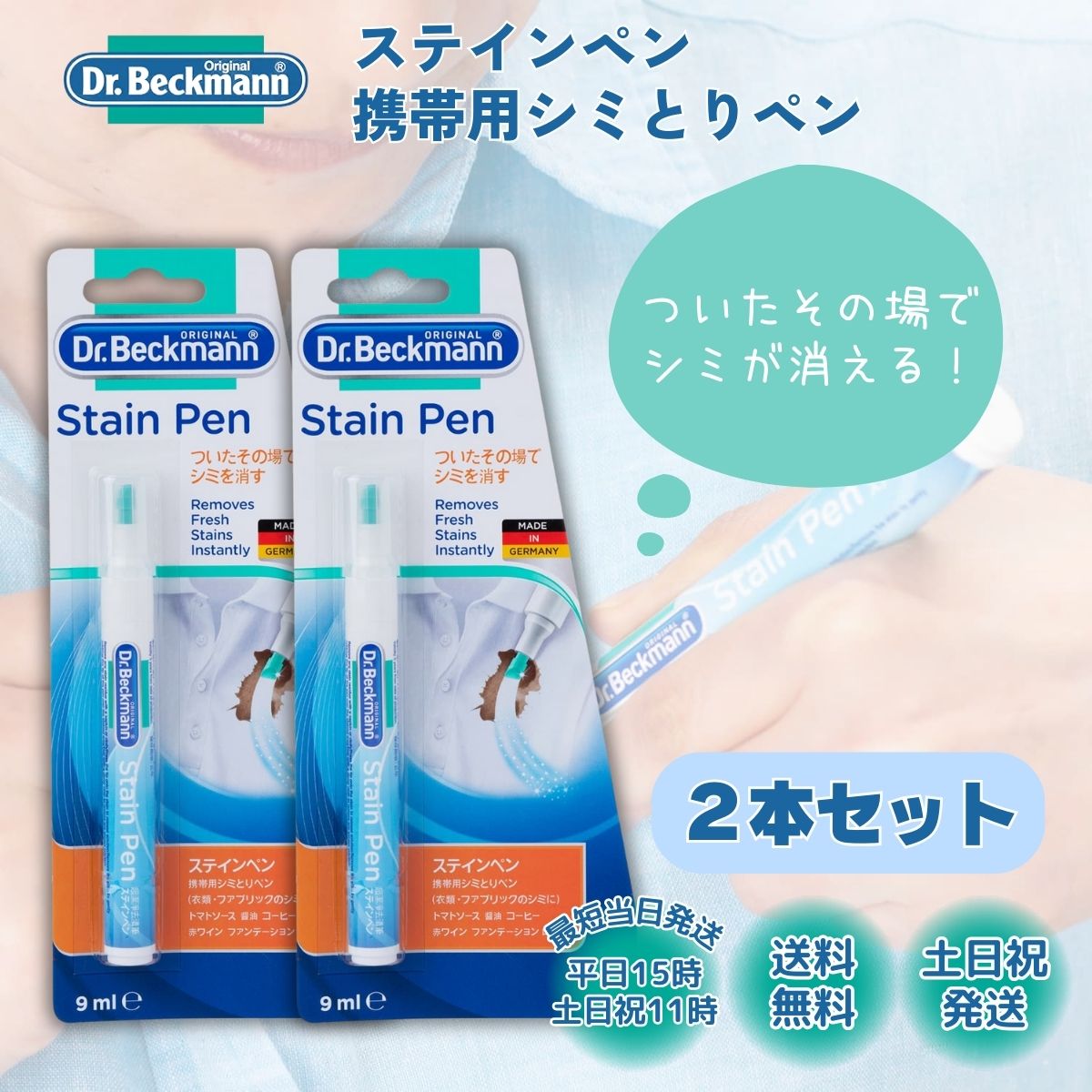 ドクターベックマン ステインペン 2本 携帯用 シミ取りペン 洗濯漂白剤 シミとり