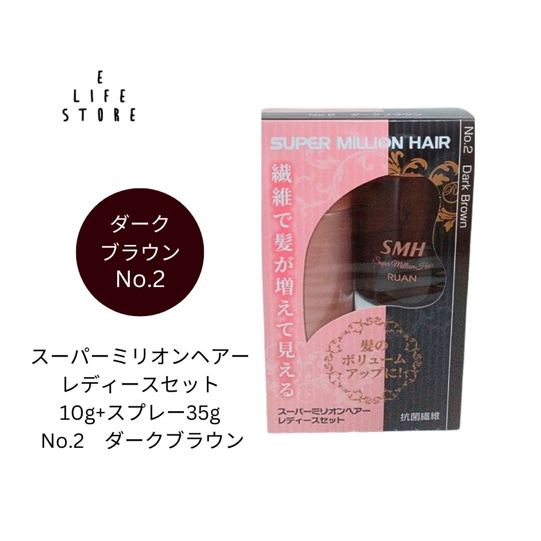 スーパーミリオンヘアー レディースセット 10g+スプレー35g No.2 ダークブラウン 増毛 脱毛症 白髪 薄毛 分
