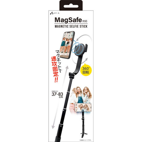 マグセーフ対応 セルカ棒 Magsafe対応 マグネット&クリップ セルフィースティック ブラック 自撮り 自撮り