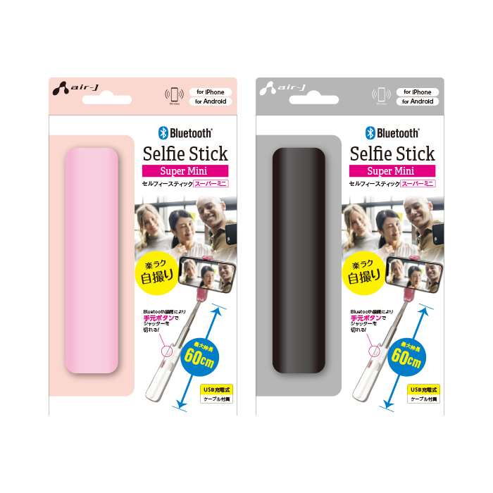 Bluetooth 自撮り棒 セルフィースティック スーパーミニ 最大伸長60cm セルカ棒 コンパクト エアージェイ B