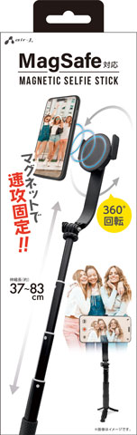 エアージェイ ATR-8(AIRS) MagSafe対応 マグネット&クリップ セルフィースティック(ブラック)[ATR8AIRS]