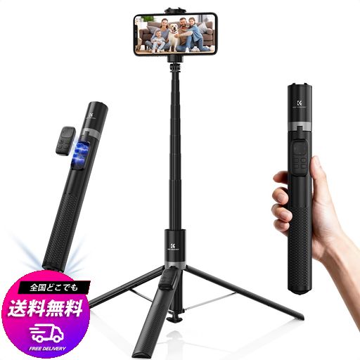 K&F CONCEPT セルフィースティック スマホ 三脚 自動開閉 175cm 360°回転 軽量 コンパクト 安定性 リモコ