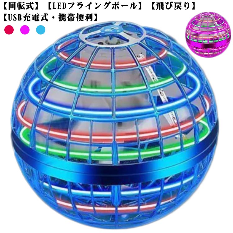 回転式 フライングボール ドローン 充電式 USB 浮遊 ミニ ブーメラン ジャイロ LED 戻ってくる 光る ボール