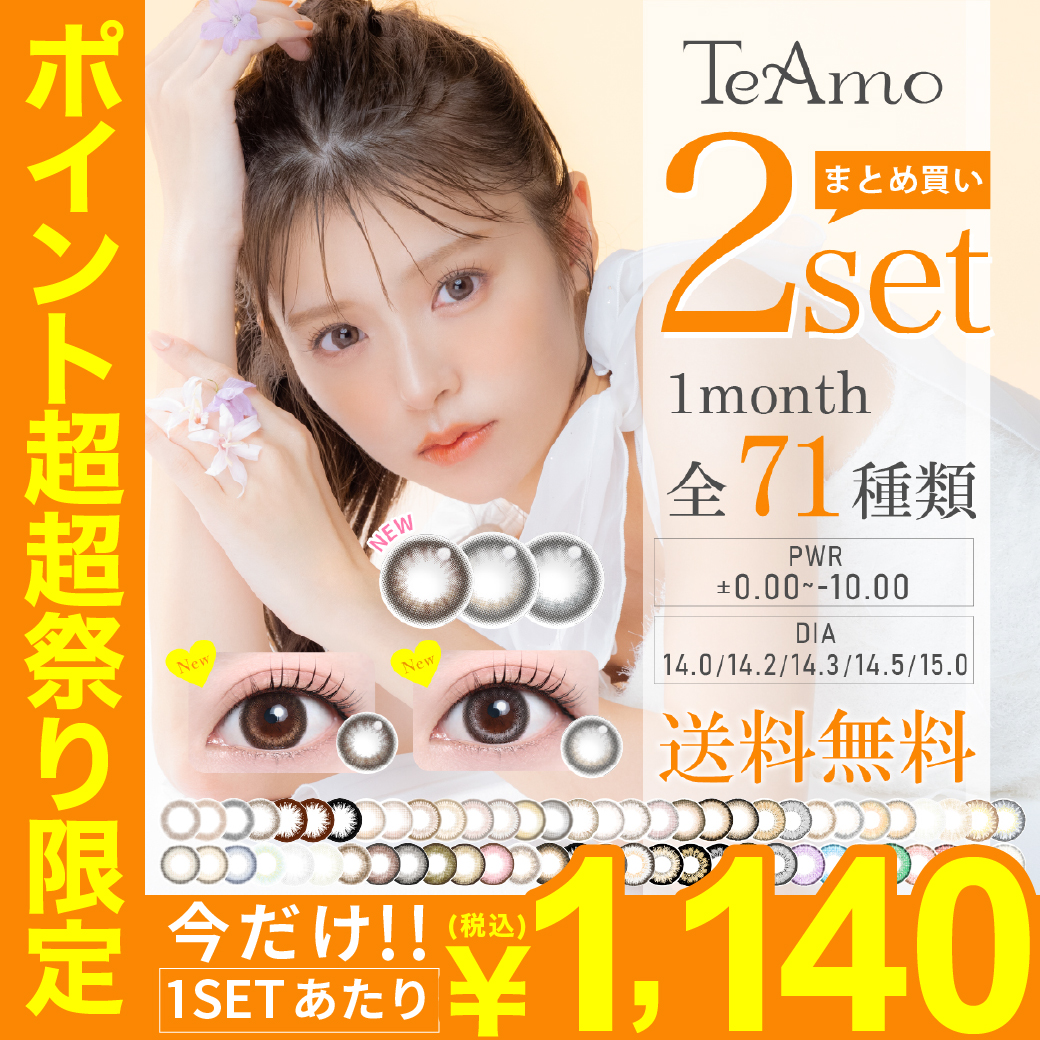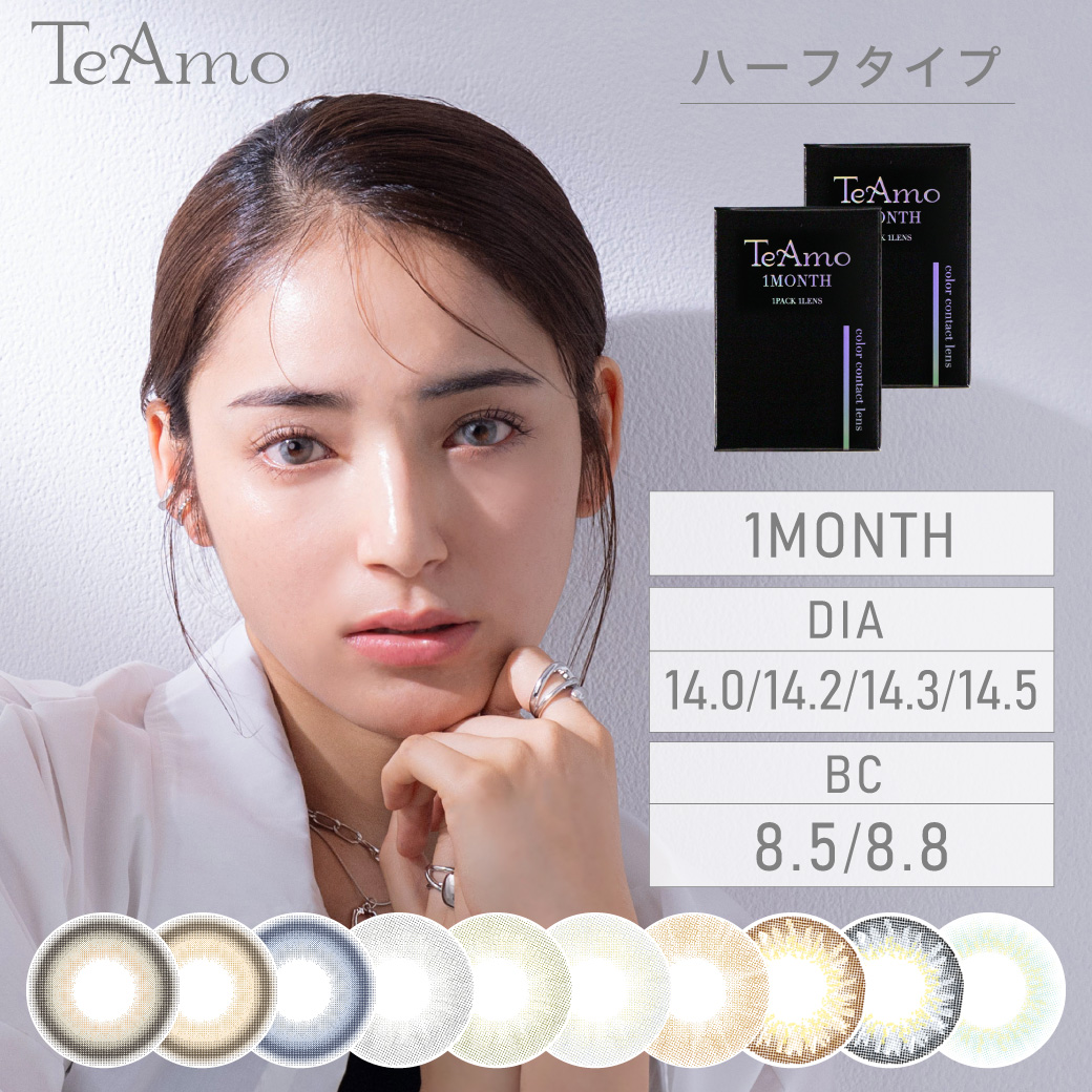カラコン 1ヶ月 マンスリー TeAmo ハーフタイプ 2枚売り カラーコンタクトレンズ 送料無料 1ヶ月 度あり 度