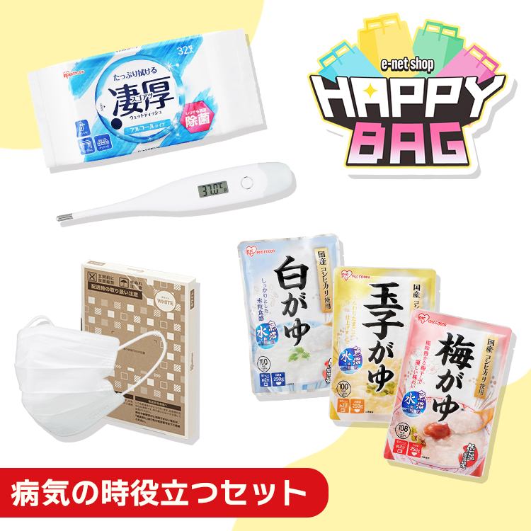 \ハッピーバッグ/ マスク 不織布 不織布マスク 体温計 ウェットティッシュ アルコール おかゆ レトルト