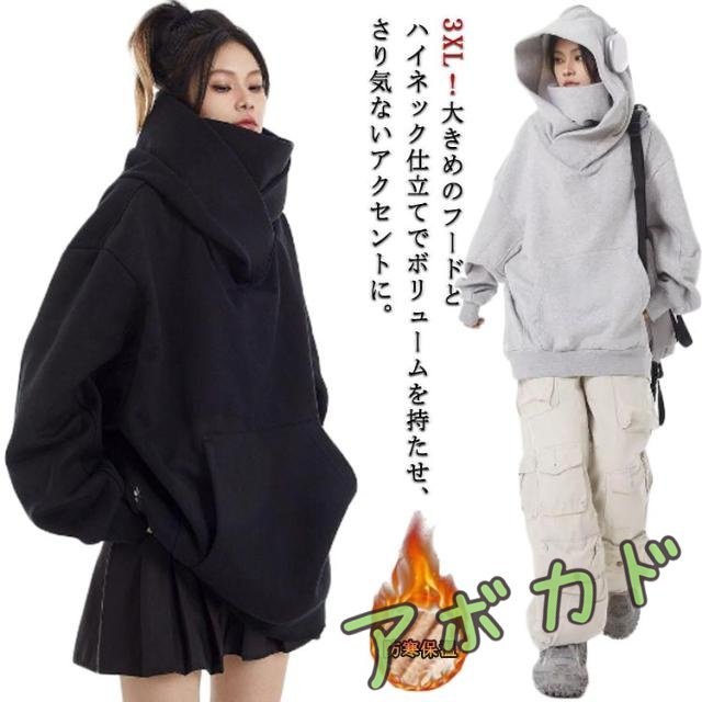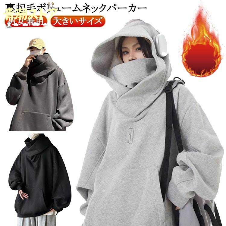 保温 ボリュームネックパーカー 男女兼用 メンズ 秋 忍者パーカー 裏起毛 フード付きパーカー ジュアル レ